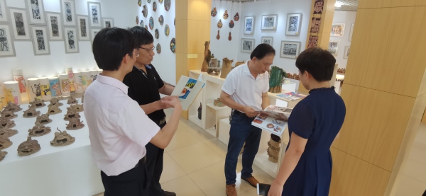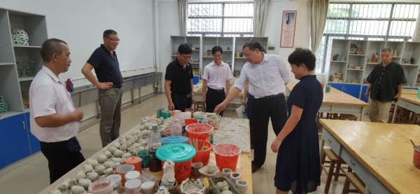 會(huì)前,鎮(zhèn)南小學(xué)張洪娣校長(zhǎng)帶領(lǐng)來(lái)賓參觀校園,介紹學(xué)校藝術(shù)特色建設(shè)及發(fā)展規(guī)劃,肇慶學(xué)院的專家學(xué)者對(duì)學(xué)校藝術(shù)特色教育成果贊嘆不已。