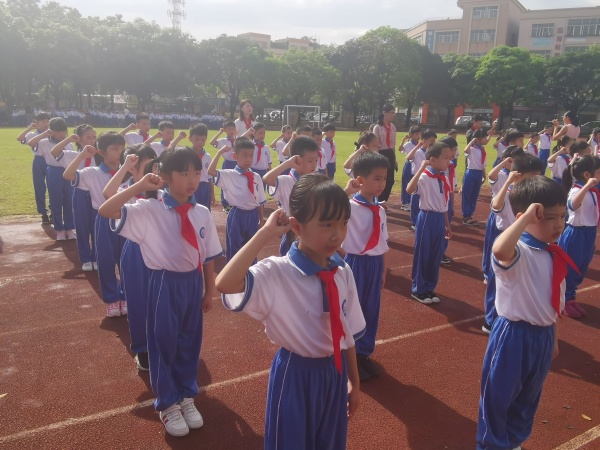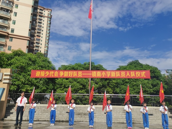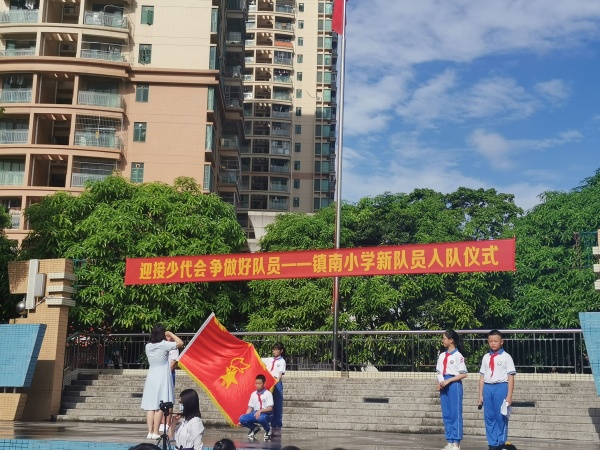 晴日暖風生麥氣,綠陰幽草勝花時。6月3日,鎮(zhèn)南小學在操場上舉行了新隊員入隊儀式。一年級共有112名新隊員在鮮紅的隊旗的見證下,光榮地加入了中國少年先鋒隊組織。