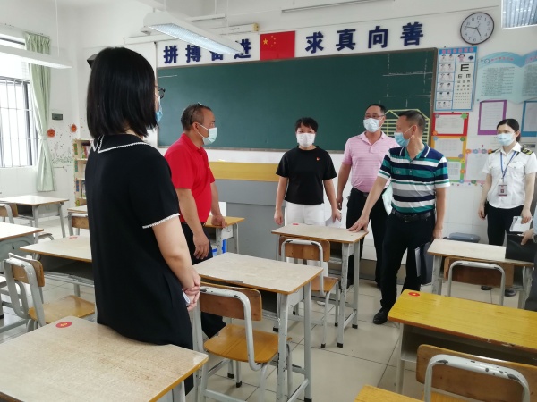 春光燦爛,繁花盛開,鎮(zhèn)南學(xué)子歸來的好時光。為進(jìn)一步做好防控疫情,做好學(xué)生返校準(zhǔn)備工作,5月9日下午,由古鎮(zhèn)鎮(zhèn)教育事務(wù)指導(dǎo)中心陳和添老師為組長,一行6人組成的驗收小組到達(dá)鎮(zhèn)南小學(xué),對學(xué)生返校準(zhǔn)備工作進(jìn)行督導(dǎo)驗收。