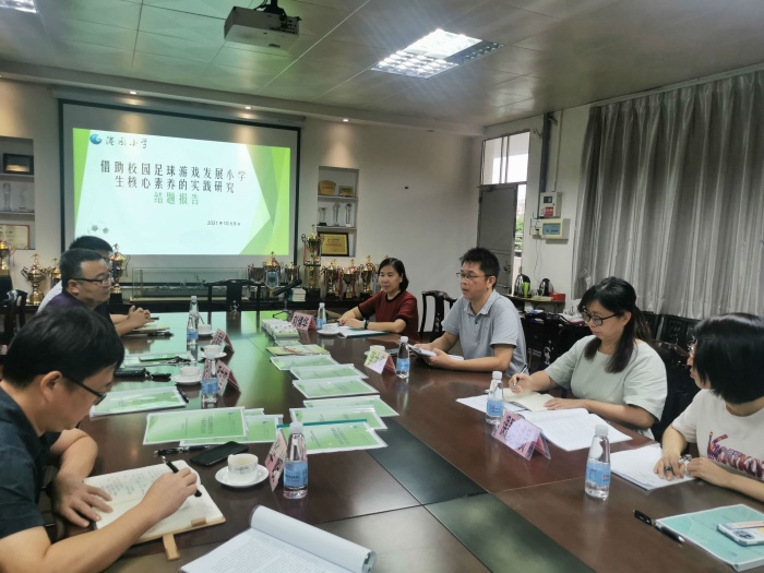 10月8日下午,港園小學(xué)2018年市級(jí)青年課題《借助校園足球游戲發(fā)展小學(xué)生核心素養(yǎng)的實(shí)踐研究》在學(xué)校會(huì)議室舉行了結(jié)題報(bào)告會(huì)。中山市德育研究與指導(dǎo)中心常務(wù)副主任潘志堅(jiān)老師,沙溪鎮(zhèn)教體中心教研員張乖祥老師,中山市德育研究與指導(dǎo)中心成員華峻校長(zhǎng)和沙溪鎮(zhèn)云漢小學(xué)李荊校長(zhǎng)出席本次報(bào)告會(huì),并就課題成果進(jìn)行鑒定。