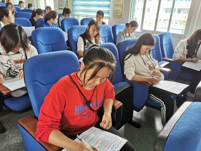 接著,汪芳組織了教師“五項(xiàng)管理”閉卷答題活動(dòng)。老師們經(jīng)過30分鐘的答題時(shí)間,交上了滿意的答卷。