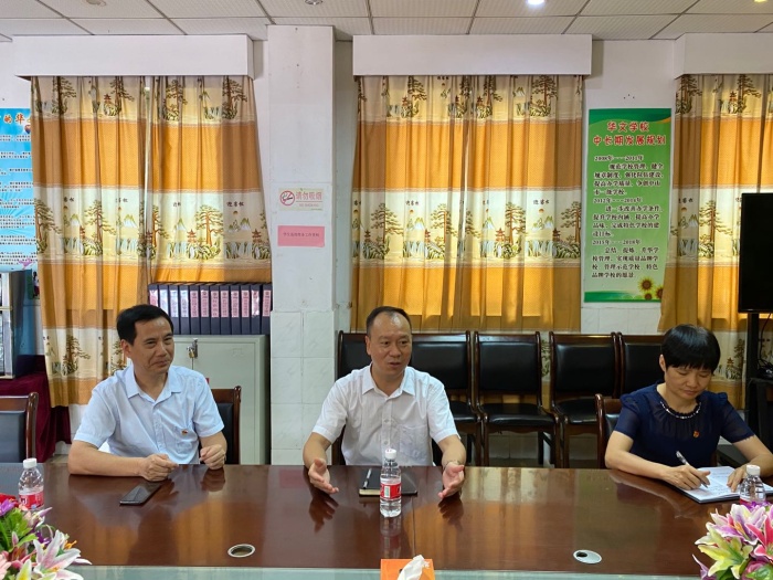 9月10日上午,橫欄鎮(zhèn)副鎮(zhèn)長梁澤基、教育系統(tǒng)黨委副書記梁錦珍蒞臨華文學校關懷慰問教師,華文學校謝春生校長及行政、教師代表陪同座談。