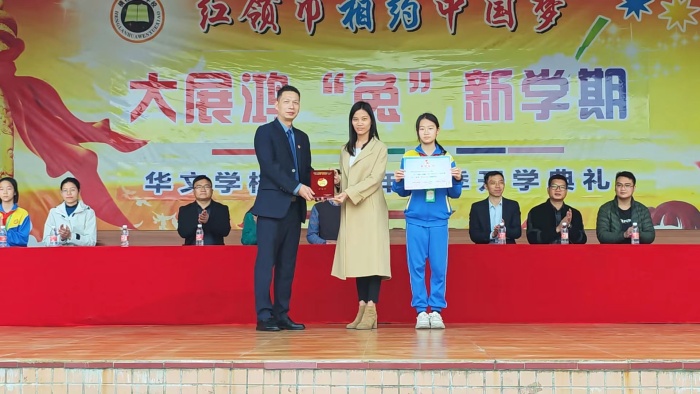 新年伊始,萬(wàn)象更新。學(xué)校黨支部書記賈如意校長(zhǎng)的致辭慷慨激昂,回顧過(guò)往,逐夢(mèng)前行。賈校長(zhǎng)對(duì)華文學(xué)子提出了新的要求與期望:號(hào)召同學(xué)們能堅(jiān)守初心,立鴻鵠志,行穩(wěn)致遠(yuǎn),與華文共奮進(jìn),與時(shí)代共成長(zhǎng)!同時(shí)向全校師生致以春天最美好的祝愿:希望全校師生們?cè)谇啻褐A文遇見(jiàn)最好之自己,譜寫最美之華章!梁曉敏老師作為優(yōu)秀教師的代表進(jìn)行發(fā)言。梁曉敏老師希望同學(xué)們?cè)趯W(xué)習(xí)的新征程上能攜帶著文明與高尚、理想與目標(biāo)、自信與堅(jiān)強(qiáng)、勤奮與努力這些寶貴的精神財(cái)富,一起乘長(zhǎng)風(fēng),破萬(wàn)里浪!隨后,學(xué)生代表進(jìn)行發(fā)言。珍惜時(shí)間,嚴(yán)于律己是良訓(xùn),她號(hào)召全體同學(xué)以新學(xué)期為新的起點(diǎn),以滿腔的熱情、飽滿的精神和堅(jiān)定的信心,去迎接新學(xué)期的挑戰(zhàn)。