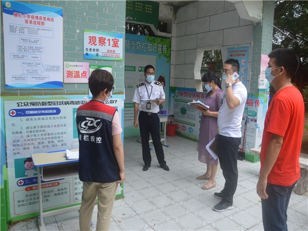 為2020年春季學(xué)期返校復(fù)學(xué)做好充足準(zhǔn)備,為全校師生生命安全和身體健康保駕護航,2020年5月8日上午,由橫欄鎮(zhèn)新冠肺炎疫情防控指揮部辦公室、橫欄鎮(zhèn)教育事務(wù)指導(dǎo)中心、衛(wèi)計局、市場監(jiān)管分局等單位聯(lián)合組成的督導(dǎo)檢查組對橫欄小學(xué)2020年春季學(xué)生返學(xué)準(zhǔn)備工作進(jìn)行復(fù)檢驗收。