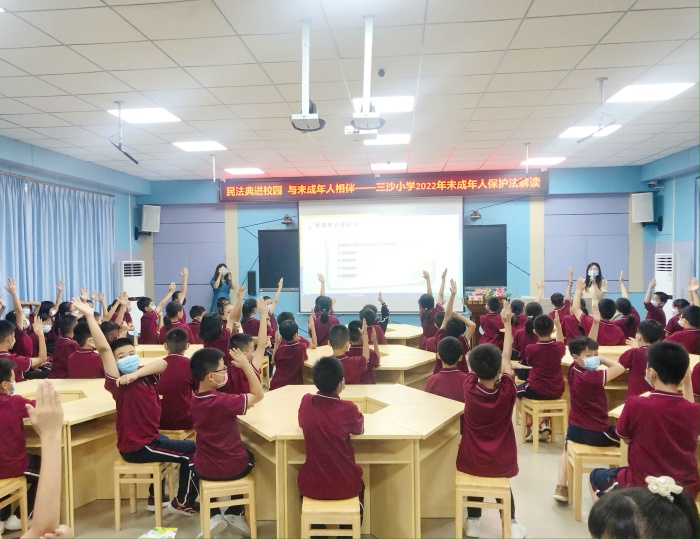 為了扎實做好民法典在學生群體的宣傳普及工作,樹立學生的法律意識,增強學生的自我保護能力,做到學法、懂法、守法,學會用法律知識保護自己。2022年6月8日下午,在橫欄鎮(zhèn)三沙小學一樓錄播室開展未成年人保護法解讀宣傳教育講座。本次活動由橫欄鎮(zhèn)司法所、橫欄鎮(zhèn)關工委主辦,橫欄鎮(zhèn)三沙小學承辦。三沙小學邀請了廣東廣中律師事務所廖珊律師到校進行宣講。