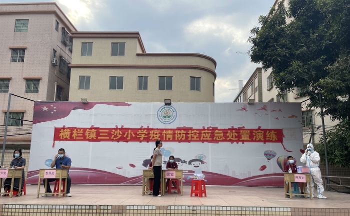為做好學(xué)校的疫情防控工作,提高學(xué)校的公共衛(wèi)生突發(fā)事件應(yīng)急處置能力,9月6日下午,橫欄鎮(zhèn)三沙小學(xué)組織全校師生在學(xué)?;@球場(chǎng)開展了防疫工作應(yīng)急演練活動(dòng),收到良好的效果。