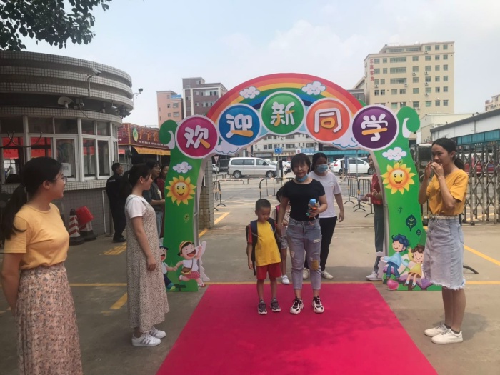 當天下午,一年級的新生在家長的帶領(lǐng)下,高高興興地來到校園,按照學校的規(guī)劃先走紅地毯進校園,然后簽到、找教室、找座位,此時孩子們臉上露出了初入校園的好奇和興奮的笑容。隨后,家長們帶小孩到二樓班級簽到,并掃描二維碼加入班級微信群。