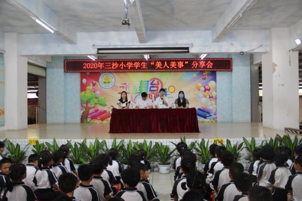 6月28日下午,橫欄鎮(zhèn)三沙小學在學校教學樓一樓架空層舉行了2020年學生“美人美事”分享會,主持分享會的是學校黃燕芬副校長,參加分享會的有學校全體師生。