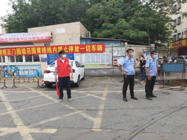 從上午七點開始,在學校門前,交通協(xié)管、保安、學校領導和家長義工頂風冒雨維持入校秩序,分工合作進行路口交通疏導和校門測溫。門口增設安全通道,學校貼心地在地面貼上間隔一米的標志點,并細心提醒孩子們保持1米安全距離。橫欄鎮(zhèn)教育事務指導中心教科研王春明專干也一早到三沙小學指導學校開學工作。