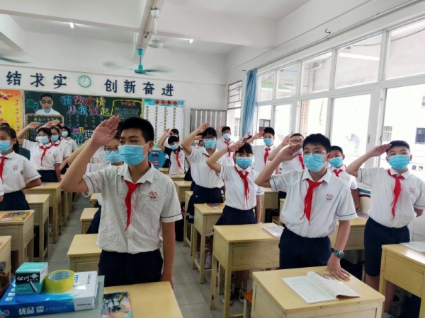 漫長的寒假終于結束,沉寂已久的校園按下了重啟鍵,迎來了孩子們久違的歡笑聲。5月18日上午,橫欄鎮(zhèn)三沙小學四到六年級全體學生順利返校,并在教室參加了一場特殊的開學典禮。