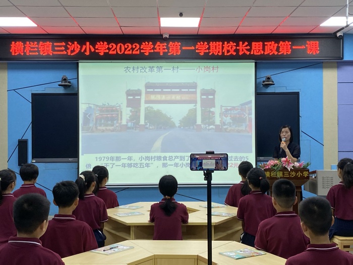 為了激發(fā)學(xué)生的愛國(guó)、愛黨情懷,深入學(xué)習(xí)貫徹習(xí)近平總書記關(guān)于少年兒童和少先隊(duì)工作的重要論述,2022年9月16日,三沙小學(xué)黨支部書記馮紅燕校長(zhǎng)以《國(guó)富民強(qiáng) 喜迎二十大》為題為三小學(xué)子講授了思政第一課。