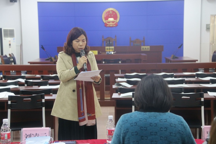 由謝水鳳老師指導(dǎo)的初二(7)班帶來的模擬法庭展示課是模擬庭審“被告人羅成(男)拐賣婦女、兒童一案”,整個(gè)庭審程序自然流暢,學(xué)生角色扮演到位,聲情并茂,現(xiàn)場還原了法庭庭審莊嚴(yán)肅穆的氛圍和場景,在場的所有觀眾都非常認(rèn)真嚴(yán)肅地觀賞了整個(gè)庭審過程。