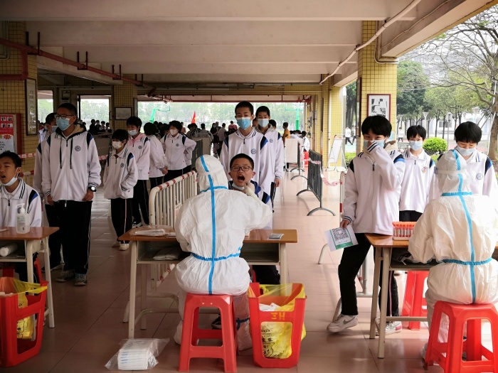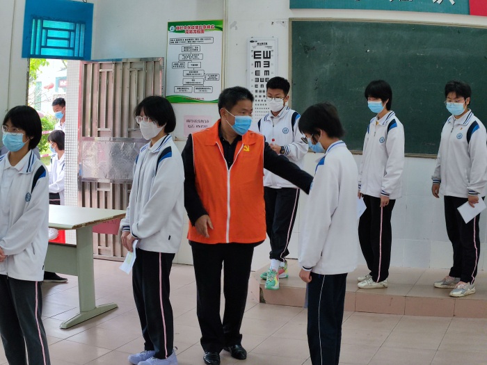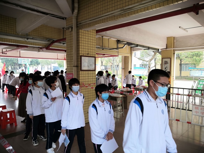 橫欄中學(xué)參加本次核酸檢測的師生共有3000多人,分初三、初二、初一三個(gè)批次,共6條檢測通道,依次開展檢測。在參加檢測前,學(xué)校相關(guān)部門和班主任做了大量的準(zhǔn)備工作,提前收集好了學(xué)生的葵花碼,劃定了進(jìn)場路線、排隊(duì)區(qū)、待檢區(qū)、檢測區(qū)等區(qū)域,大大保證了現(xiàn)場的安全、有序、高效。