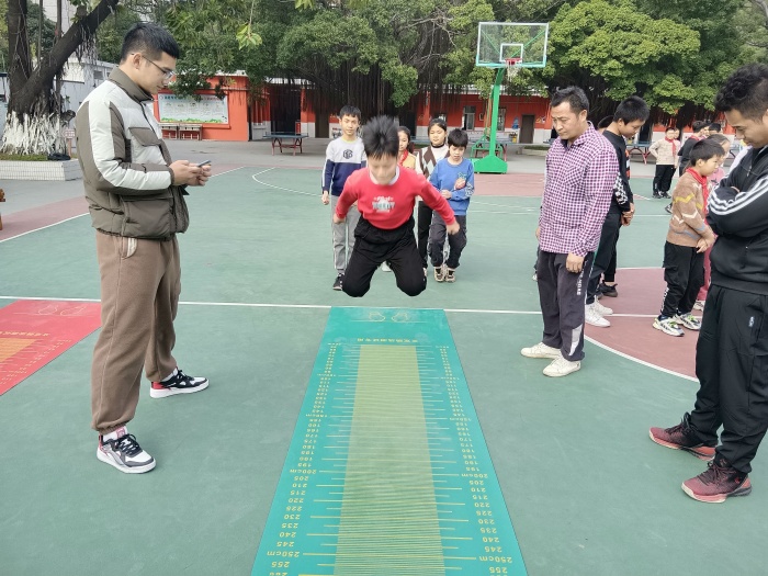 本次黃圃鎮(zhèn)體育測試,雛鷹學校領(lǐng)導(dǎo)高度重視,測試當天由張華校長統(tǒng)籌指揮,組織全體行政、體育老師、班主任參與其中。本次抽測的項目有:立定跳遠和1分鐘跳繩;體育科組對當天的測試項目進行具體的安排,做到分工合理、分工明確,將測試的每一個細節(jié)落實到準備工作中。為了使老師、學生明確整個測試流程,學校還提前組織師生進行模擬測試,不斷地調(diào)整工作方案,以確保本次抽測工作安全、順利完成,并且確保測試結(jié)果的公正、準確。