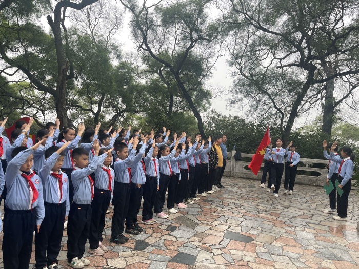 最后,在大隊(duì)輔導(dǎo)員黃雪梅老師的帶領(lǐng)下,全體師生向革命先烈宣誓:繼承先烈遺志,發(fā)揚(yáng)革命先烈的愛(ài)國(guó)主義精神,勤奮學(xué)習(xí),報(bào)效祖國(guó),做新時(shí)代好少年!