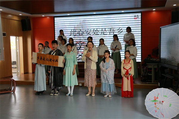 接著,與會老師共同欣賞了升輝小學師生帶來的傳統(tǒng)節(jié)目展演。展演上,童聲手勢舞演繹中華孝道;吟誦社團的吟詠讓人如癡如醉;低年級師生的《粵童謠》仿佛把大家?guī)У絻簳r無憂無慮的日子;中高年級的情景劇帶著大家穿越到宋朝,感受蘇軾的瀟灑。