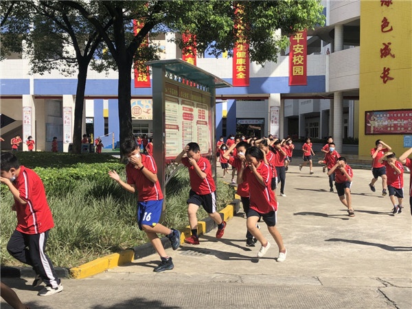 受疫情的影響,本次演練分一、二、三年級組和四、五、六年級組兩次進行。隨著預(yù)演信號的響起,安全應(yīng)急疏散演練拉開了帷幕。在1分45秒后,一、二、三年級組全體師生在操場集結(jié)完畢,各班立即清點人數(shù),各年級組長分別向總指揮張老師匯報人員疏散情況之后先回教室。緊接著輪到四、五、六年級組,他們用時1分25秒。最后,總務(wù)主任梁改蘭主任對本次應(yīng)急安全疏散演練作了總結(jié)和表揚。同時她還對全體師生進行了校園安全知識的普及教育,理論結(jié)合實際,實效性強。