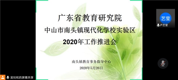 2020年5月26日上午,南頭鎮(zhèn)“線上廣東省教育研究院 中山市南頭鎮(zhèn)現(xiàn)代化學(xué)校實驗區(qū)2020年工作推進會”在民安小學(xué)開展,出席本次推進會的領(lǐng)導(dǎo)有:廣東省教育研究院基礎(chǔ)教育研究室姚軼潔副主任、黃志紅副主任、余奇博士;南頭鎮(zhèn)教育事務(wù)指導(dǎo)中心全體人員;南頭鎮(zhèn)各中小學(xué)校長、公辦幼兒園園長、各學(xué)校(公辦幼兒園)教學(xué)業(yè)務(wù)行政、實驗區(qū)專項課題主持人、校本課程建設(shè)主要負責(zé)人。升輝小學(xué)呂鑒添校長、黎財娟教導(dǎo)主任、大隊輔導(dǎo)員江婷婷老師參加本次推進會。