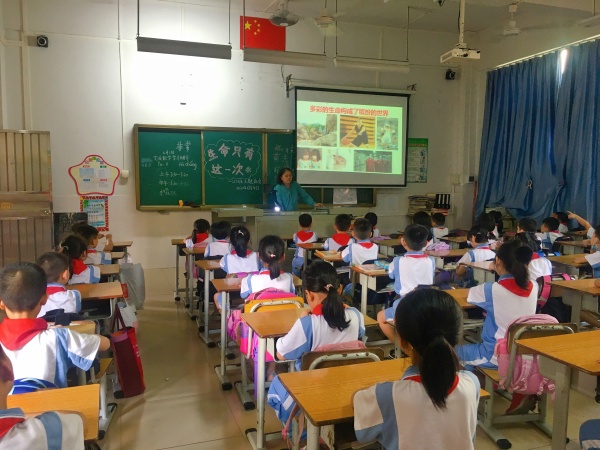 在活動的伊始,各班授課老師先與學(xué)生進行“感受心跳”的互動小游戲,引導(dǎo)學(xué)生思考“生命是什么?”生命是頑強生長的小草,是自由飛翔的雄鷹,是沉穩(wěn)的心跳,多彩的生命構(gòu)成繽紛的世界。