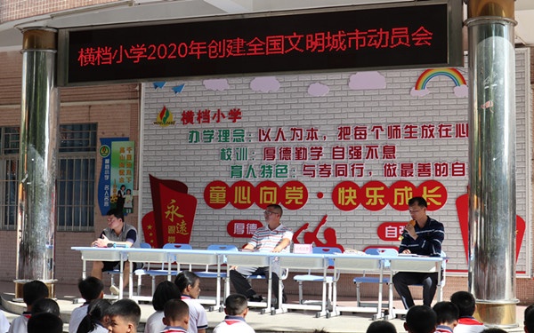 今年是中山創(chuàng)建全國文明城市的關(guān)鍵之年,為奮力實現(xiàn)全國文明城市“六連冠”的目標,7月17日上午八點正,橫檔小學集合全體師生在教學樓舉行動員會,向大家發(fā)出以下倡議: