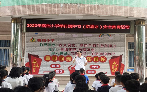 為增強(qiáng)學(xué)生端午節(jié)前安全意識,2020年6月24日早上,橫檔小學(xué)全體師生在教學(xué)樓前開展節(jié)前安全教育活動(dòng)宣傳活動(dòng),活動(dòng)由德育處的招權(quán)民主任主持。他講話的重點(diǎn)內(nèi)容有: