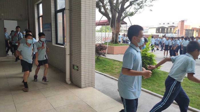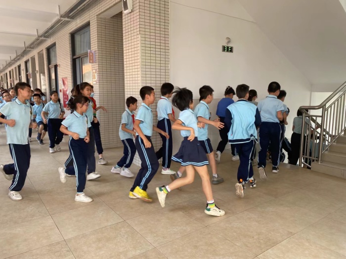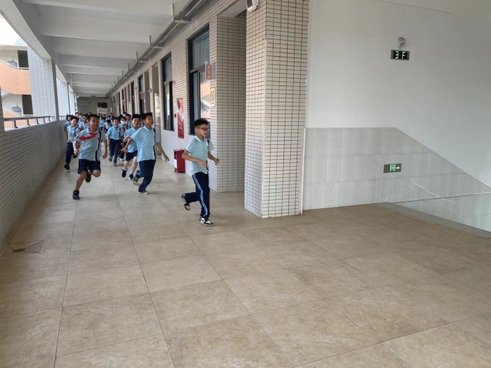課間時,全校師生聽到警報一響,就迅速而有序地從各個指定的通道進行逃生。同時,樓內(nèi)疏散人員也嚴格按照預(yù)先的演習方案疏散學(xué)生,保證在樓內(nèi)學(xué)生的安全,以免慌亂中出現(xiàn)擁擠或者踩傷學(xué)生現(xiàn)象。