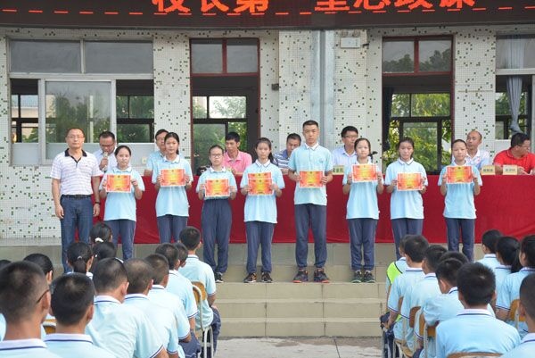 簡單而隆重的頒獎儀式上,獲獎的同學難以掩飾心中的喜悅,燦爛的笑容洋溢在臉上。臺下的同學給獲獎的同學送上熱烈的掌聲。