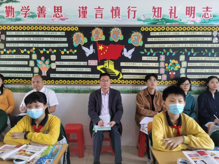 第三個(gè)環(huán)節(jié)是深入課堂聽課,評(píng)估組一行在學(xué)校行政、科級(jí)組長(zhǎng)的陪同下,前往各年級(jí)不同班級(jí)進(jìn)行現(xiàn)場(chǎng)聽課,包含的科目有語文、數(shù)學(xué)、英語、美術(shù)、音樂。課堂上,老師們充分利用“對(duì)分課堂”開展教學(xué),對(duì)學(xué)生循循善誘,學(xué)生們積極思考,爭(zhēng)先恐后回答問題。