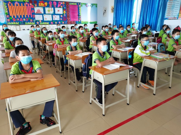 5月18日早上7點,教師們在梁德葉校長的帶領(lǐng)下,到了各自的崗位,做好了迎接學(xué)生上學(xué)的準(zhǔn)備。7點15分開始,四至六年級學(xué)生按照錯峰上學(xué)安排,佩戴著口罩,保持安全距離,單列縱隊,依次有序地從各自年級通道進(jìn)入校園。入校后,學(xué)生們先在值日教師的指引下到洗手處用“七步洗手法”洗手,隨后才進(jìn)入各自的教室。班主任及時對學(xué)生進(jìn)行晨檢、查驗復(fù)課證明等日常防護(hù)工作。教室里,學(xué)生佩戴著口罩,單人單桌,保持距離,一雙雙明亮的小眼睛里仍閃著充滿求知欲的光芒。