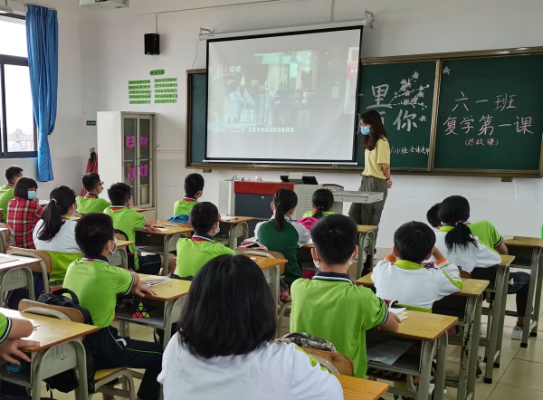 為了開展疫情防控教育,引領(lǐng)學(xué)生科學(xué)調(diào)試身心狀態(tài),積極樂觀地生活與學(xué)習(xí),學(xué)校組織全體學(xué)生在各自課室觀看了“復(fù)學(xué)第一課”。學(xué)生們通過學(xué)習(xí)抗疫英雄事跡,探尋戰(zhàn)勝疫情的諸多因素,了解了中國為世界各國應(yīng)對疫情所貢獻(xiàn)的中國方案和中國擔(dān)當(dāng),全體師生從抗擊疫情的經(jīng)歷中獲得思想變化及精神成長。