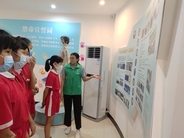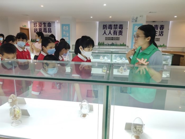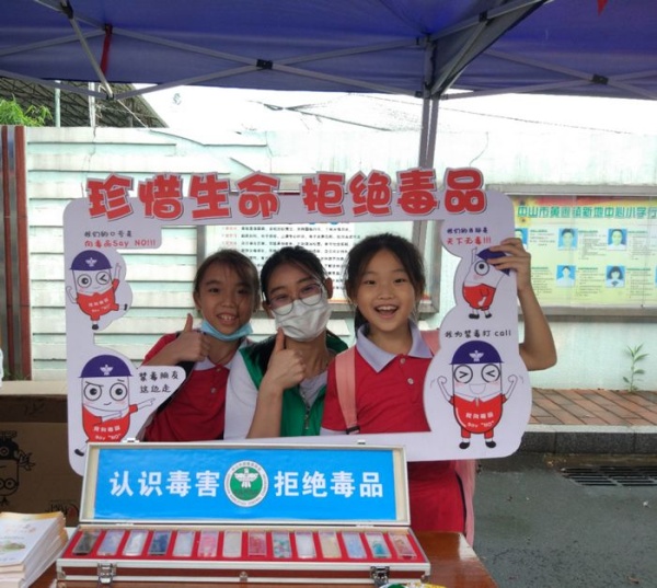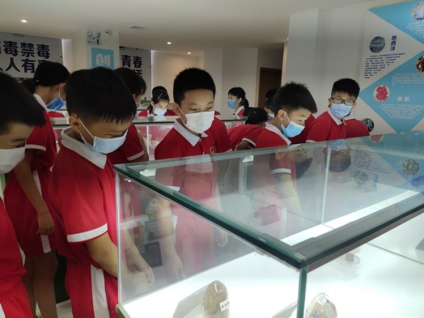 此次活動學校組織了五年級50名學生參觀鎮(zhèn)禁毒社工中心,學校杜晗婷主任、大隊輔導員杜秋紅等老師帶隊前往。在參觀過程中,社區(qū)工作人員聲情并茂向同學們講解了毒品的種類、特征、危害等知識。不僅如此,現(xiàn)場還展示了仿真毒品的模型,利用人體模型向同學們講解了人體吸食毒品的渠道及其危害。隨后,社區(qū)工作人員帶領全體同學鄭重宣誓:“我是中華民族的兒女,不忘恥辱,堅決與毒魔作斗爭,珍愛生命,拒絕毒品?!毙那f嚴而嘹亮,感人至深。儀式結束后,同學們移步到社區(qū)的宣傳攤位與禁毒機器人互動,參與答題,并領取了禁毒宣傳資料、禁毒小禮品。