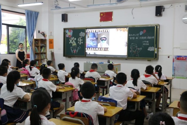 接著,一二三年級(jí)各班班主任組織同學(xué)們進(jìn)行“天使歸來(lái),英雄開(kāi)講”復(fù)學(xué)第一課主題班會(huì)活動(dòng),讓同學(xué)們了解援鄂醫(yī)護(hù)人員們的先進(jìn)事跡,汲取榜樣的力量。各班同學(xué)觀看“天使歸來(lái),英雄開(kāi)講”視頻,視頻中中山支援湖北第三批醫(yī)療隊(duì)隊(duì)長(zhǎng)陳智偉和中山支援湖北第一批醫(yī)療隊(duì)隊(duì)員魏翠云講述中山醫(yī)療隊(duì)馳援湖北的經(jīng)歷與感受。從兩位醫(yī)護(hù)人員聲情并茂的講述中同學(xué)們了解到,在抗疫過(guò)程中醫(yī)護(hù)人員化身鋼鐵戰(zhàn)士勇往直前,感悟到醫(yī)護(hù)人員的偉大,更了解到全國(guó)人民萬(wàn)眾一心抗擊疫情的民族凝聚力。
