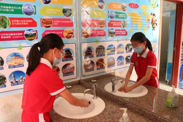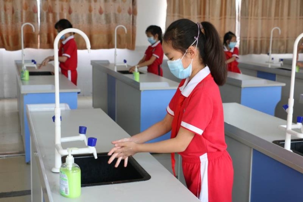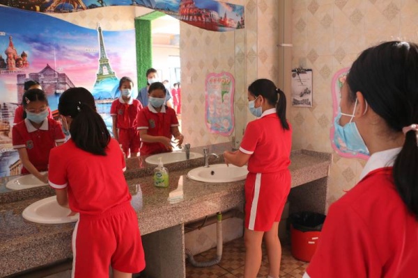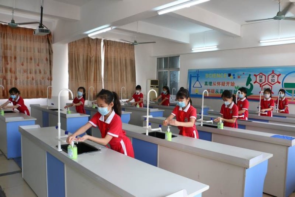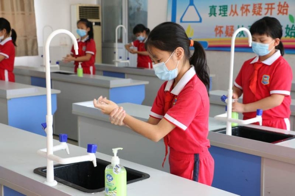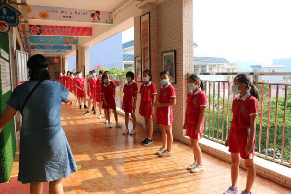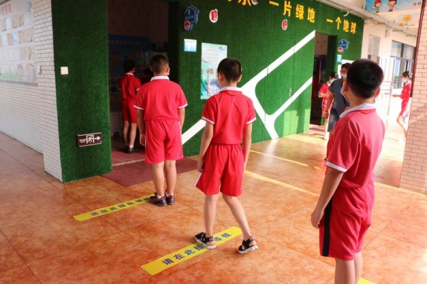 為進(jìn)一步做實做細(xì)學(xué)生返校的各項準(zhǔn)備工作,讓全體師生進(jìn)一步熟悉學(xué)生返校的工作流程。從5月19日開始,新地中心小學(xué)利用本周每天下午第三節(jié)對四五六年級進(jìn)行洗手、出操、放學(xué)集隊的常規(guī)訓(xùn)練 :首先是進(jìn)行七步洗手法的訓(xùn)練。第一天分別是四(2)班在科學(xué)室前、五(2)班在洗手間、六(1)班在美術(shù)室前進(jìn)行洗手法訓(xùn)練。各班在何建輝主任和正副班主任的指導(dǎo)下在指定地點的洗手池,同學(xué)們分批進(jìn)行洗手訓(xùn)練,確保每個同學(xué)學(xué)會七步洗手法。五(1)五(3)五(4)六(2)六(3)在鄧蛟龍主任和正副班主任和的帶領(lǐng)下在操場進(jìn)行集隊出操的訓(xùn)練。四(1)、四(3)、四(4)在杜晗婷主任、林靜主任以及正副班主任的帶領(lǐng)下在小廣場和校門口進(jìn)行集隊放學(xué)訓(xùn)練。