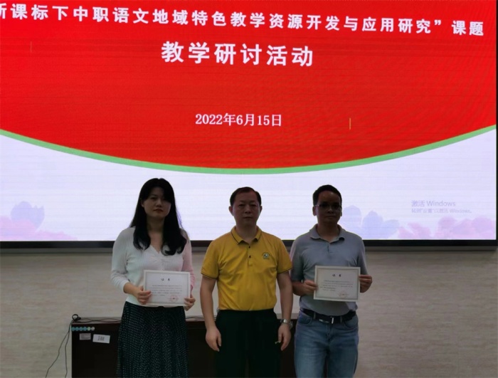 6月15日上午,中山市教研室在中山市火炬科學(xué)技術(shù)學(xué)校組織開(kāi)展中職語(yǔ)文地域資源開(kāi)發(fā)應(yīng)用專(zhuān)題教學(xué)研討活動(dòng),全市中職學(xué)校語(yǔ)文骨干教師、市“新課標(biāo)下中職語(yǔ)文地域特色資源開(kāi)發(fā)與應(yīng)用研究”課題組成員20余人參與活動(dòng)。市職教教研員方鐵民、火炬科學(xué)技術(shù)學(xué)校副校長(zhǎng)王劍勤及黨建辦、行政辦、校企合作處等相關(guān)領(lǐng)導(dǎo)全程參加,師資建設(shè)處廖江主任主持了本次活動(dòng)。