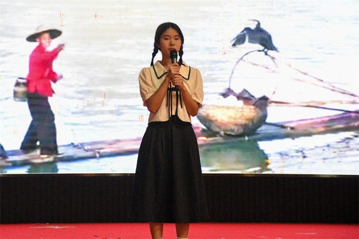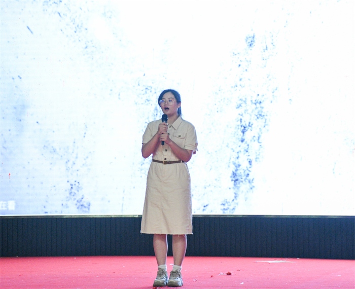 一首飽含深情的《周總理,你在哪里》拉開了本次比賽朗誦環(huán)節(jié)的帷幕。接著,《永不消逝的聲音》《赤潮曲》《最后一次演講》《光的贊歌》等一篇篇紅色經(jīng)典佳作,在選手們時而慷慨激昂、時而深情委婉的朗讀聲中,再次綻放出蓬勃的生命力。而《我愛這土地》《中華少年》《我有祖國,我有母語》《中國青年》等愛國主義題材的經(jīng)典篇目的誦讀,則點燃了在場所有觀眾愛黨愛國的激情,引領(lǐng)著大家對紅色革命的深切追憶。一篇篇經(jīng)典佳作,選手們或激昂或婉約,或可愛或清新的朗誦,再將經(jīng)典誦讀與音樂、舞蹈、表演等融合,以不同的形式來表達(dá)自己的情感和對詩篇的理解,帶給觀眾們聽覺享受的同時,也帶來了強(qiáng)烈的視覺沖擊和精神的洗禮。