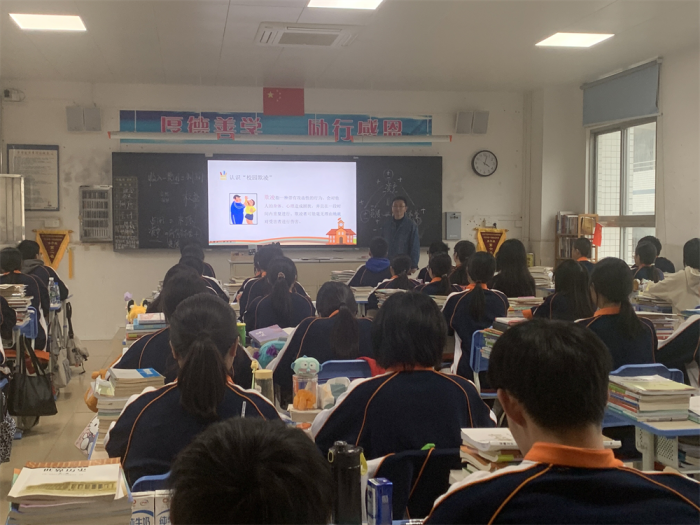 在各班主題班會(huì)課上,班主任圍繞著“什么行為屬于校園暴力、校園暴力的嚴(yán)重后果、如何防范和應(yīng)對(duì)”等三個(gè)方面展開(kāi)話題,并結(jié)合多媒體PPT內(nèi)容以及網(wǎng)絡(luò)鏈接上真實(shí)的案例,共同剖析了校園內(nèi)外校園欺凌的類(lèi)型、危害以及引發(fā)的原因和主要責(zé)任,層層遞進(jìn)地引導(dǎo)學(xué)生學(xué)會(huì)如何理智的應(yīng)對(duì)校園暴力,積極引導(dǎo)學(xué)生運(yùn)用正確的方法處理好同學(xué)間的矛盾和問(wèn)題,增強(qiáng)學(xué)生自我保護(hù)的意識(shí),最大化的提高自己生命安全。