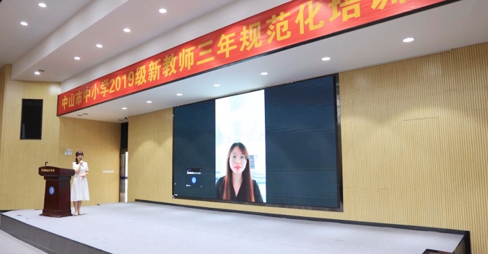 市教育和體育局副局長王志紅做講話。王志紅副局長代表市教體局,對(duì)596位新教師順利完成學(xué)業(yè)表示熱烈的祝賀,向?yàn)檫@次培訓(xùn)付出辛勤勞動(dòng)的全體教職工表示由衷的感謝。同時(shí)她指出,新教師就是中山未來教育的血脈延續(xù),市、鎮(zhèn)街、校三級(jí)要高度重視新教師的培訓(xùn)與成長,搭建好可以讓人才層出不窮的培訓(xùn)體系,堅(jiān)持精準(zhǔn)培訓(xùn),培養(yǎng)好“新老師的老師”,全力幫助新教師們成長成才。