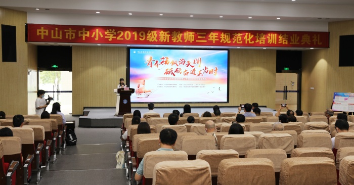 2022年7月3日下午,中山市中小學(xué)2019級(jí)新教師三年規(guī)范化培訓(xùn)結(jié)業(yè)典禮在中山職業(yè)技術(shù)學(xué)院峻德樓一樓遂賢廳隆重舉行。在疫情防控常態(tài)化的要求下,本次結(jié)業(yè)典禮采用了線上與線下相結(jié)合的方式進(jìn)行。市教育和體育局副局長王志紅,市教體局師資管理科科長呂碧華,市教師發(fā)展中心副主任(主持全面工作)洪世林,市教師發(fā)展中心副主任劉歡桐等領(lǐng)導(dǎo)出席了本次典禮。活動(dòng)由中山市教師發(fā)展中心教師培訓(xùn)部副部長陳雁玲博士主持。
