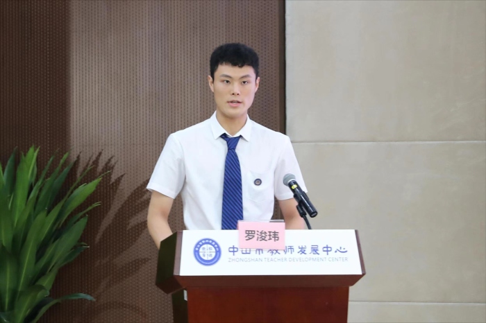 新教師代表永安中學(xué)羅浚瑋老師分享了作為一名新教師的期待與憧憬,他表示將通過(guò)新教師培訓(xùn)的平臺(tái)砥礪奮進(jìn),為中山教育事業(yè)再添力量。新教師代表迪茵公學(xué)劉威嶺老師則通過(guò)視頻連線的方式分享了她對(duì)未來(lái)教學(xué)生活的理解和思考,堅(jiān)定了自己教書(shū)育人的初心,并以“進(jìn)步的源泉在于勤”與新教師們共勉。