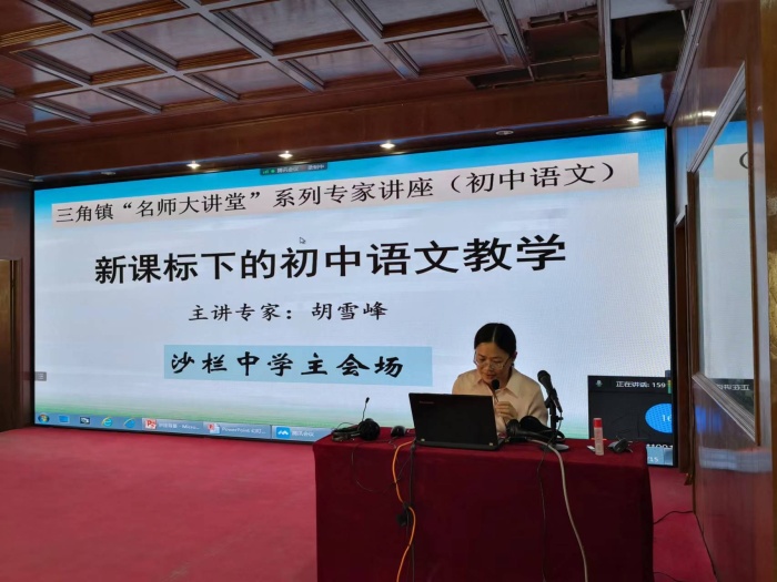 金秋時節(jié),新學期,新氣象,2022年9月15日,三角鎮(zhèn)“名師大講堂”系列專家講座之初中語文專場在沙欄中學如期舉行。本次培訓活動采用了線上線下相結(jié)合的學習方式,其中,沙欄中學作為本次活動的主會場,三角中學、迪茵公學則以線上學習的方式參加這次活動。