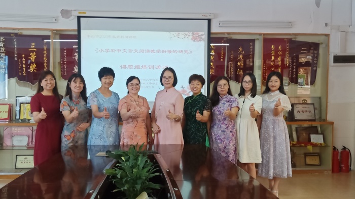為破解中小學文言文閱讀難題、更好銜接初小文言文教學、提升學生文言文閱讀能力,一起把脈,建言獻策。9月25日上午,中山市石岐區(qū)太平小學教師會議室熱火朝天。南朗街道小學語文中心教研組的市級科研課題《小學初中文言文閱讀教學銜接的研究》課題組成員匯聚一堂,開展課題研討活動?;顒佑烧n題組主持人梁麗娟老師主持,太平小學劉曉君校長、課題組成員、南朗街道小學語文中心教研組成員參加了活動。