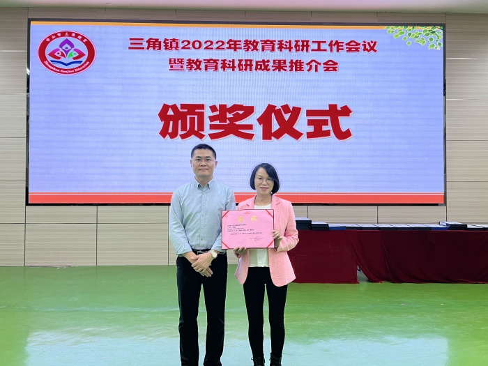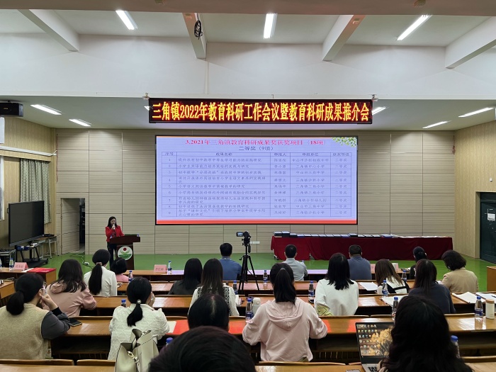 會(huì)議第一項(xiàng)議程,鎮(zhèn)中小學(xué)科研中心教研組組長(zhǎng)段美娟副校長(zhǎng)首先總結(jié)了近幾年三角鎮(zhèn)教育科研工作情況,充分肯定了近年來全鎮(zhèn)教育科研工作取得的成績(jī),特別是2021年,全鎮(zhèn)共獲得省市鎮(zhèn)教育科研成果獎(jiǎng)24項(xiàng)。段副校長(zhǎng)表示,從管理的視角來看,教育科研的管理有著四重境界:課題研究——成果評(píng)獎(jiǎng)——推廣應(yīng)用——深化發(fā)展。本次科研成果推介會(huì),就是“推廣應(yīng)用”,旨在讓科研成果,“大”起來,“活”起來,“用”起來。接著段副校長(zhǎng)宣讀省、市、鎮(zhèn)教育科研成果獎(jiǎng)獲獎(jiǎng)名單,梁文副主任、吳博事校長(zhǎng)和段美娟副校長(zhǎng)分別為獲獎(jiǎng)老師頒獎(jiǎng)。