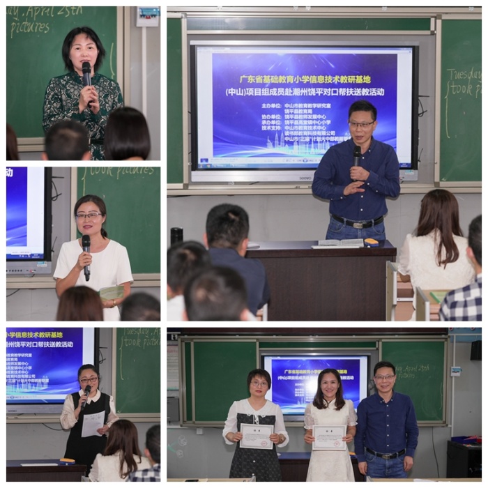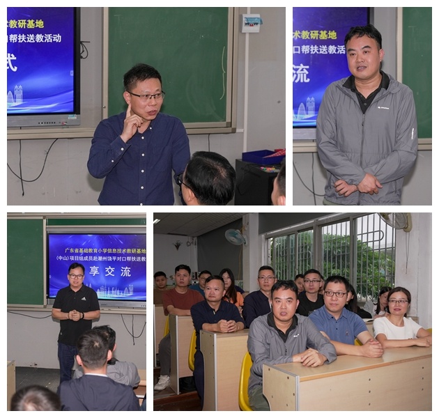學(xué)有所思,行之有向?;顒拥淖詈?,老師們齊聚一堂,就本次的對口幫扶送教活動中的學(xué)習(xí)收獲進(jìn)行了交流分享,中山市南區(qū)良都小學(xué)鄧定波主任目前在饒平縣高堂鎮(zhèn)中心小學(xué)掛職副校長,他表示,非常感謝廣東省基礎(chǔ)教育小學(xué)信息技術(shù)教研基地項目(中山)在區(qū)域聯(lián)動、教學(xué)、教研等方面的示范引領(lǐng)作用。陳明宏老師也對本次活動進(jìn)行了總結(jié),陳老師指出此次“對口幫扶送教”活動,為老師們提供了互相交流展示的平臺,促進(jìn)了教師間的教學(xué)互助,共享了優(yōu)質(zhì)的教育資源。