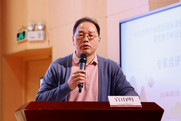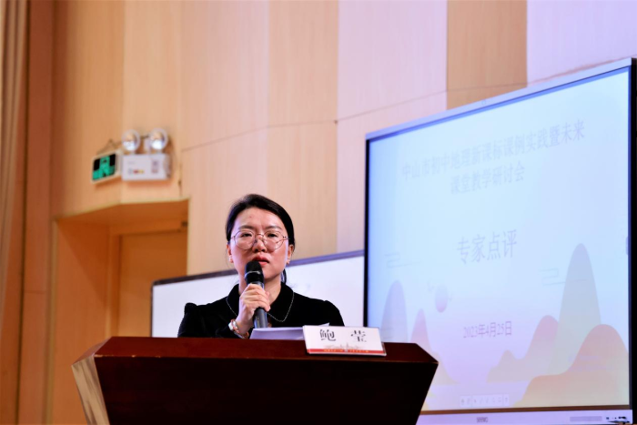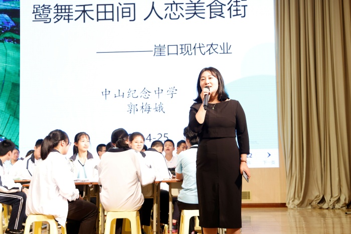 為促進(jìn)初中地理新課標(biāo)課例開(kāi)發(fā),探討未來(lái)課堂教學(xué),深化初中地理課堂改革,4月25日上午,中山市初中地理新課程標(biāo)準(zhǔn)課例實(shí)踐暨未來(lái)課堂教學(xué)研討會(huì)在中山紀(jì)念中學(xué)順利舉行。紀(jì)念中學(xué)初中黨支部書(shū)記、中學(xué)地理高級(jí)教師鮑瑩主任、教務(wù)處龔瑾主任、林森主任,德育處鄧健凡主任及中山市全體地理教師約300人參加了研討會(huì)。會(huì)議由中山市教育教學(xué)研究室地理教研員、中學(xué)地理正高級(jí)教師官山明老師主持。研討會(huì)分為公開(kāi)課展示和點(diǎn)評(píng)研討兩個(gè)環(huán)節(jié)。公開(kāi)課展示環(huán)節(jié)由中山紀(jì)念中學(xué)郭梅娥老師和坦洲中學(xué)周欣老師根據(jù)新課標(biāo)的理念和要求,以同課異構(gòu)形式,以鄉(xiāng)村振興為主題,以區(qū)域+產(chǎn)業(yè)為主線進(jìn)行了課堂設(shè)計(jì),開(kāi)展了以培養(yǎng)學(xué)生綜合思維、創(chuàng)新思維和開(kāi)放思維的課堂教學(xué)。鮑瑩主任和官山明教師對(duì)兩位老師的課堂設(shè)計(jì)和教學(xué)思路進(jìn)行了精彩的點(diǎn)評(píng)。