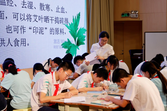 郭梅娥老師的課題為《鷺舞禾田間 人戀美食街——崖口現(xiàn)代農(nóng)業(yè)》,以探討崖口村的鄉(xiāng)村振興為主題,從“有什么”—“靠什么”—“為什么”—“怎么樣”四個(gè)角度以項(xiàng)目式學(xué)習(xí)的形式,帶領(lǐng)同學(xué)們分析崖口村的區(qū)位條件,尋找最適合崖口村的產(chǎn)業(yè)類型,總結(jié)出崖口鄉(xiāng)村振興的措施。最后,郭老師讓同學(xué)們制作宣傳畫,為崖口代言,激發(fā)同學(xué)們對(duì)家鄉(xiāng)的熱愛(ài)情懷與自豪情感。坦洲中學(xué)周欣老師以《為“艾”代言,助力鄉(xiāng)村振興——探究影響農(nóng)業(yè)生產(chǎn)布局的因素》為題,先從艾草的價(jià)值、生長(zhǎng)習(xí)性等方面了解艾草,歸納出影響農(nóng)業(yè)生產(chǎn)的自然因素。隨后,通過(guò)介紹中國(guó)“艾都”蘄春縣的蘄艾發(fā)展之路,歸納出影響農(nóng)業(yè)生產(chǎn)的社會(huì)經(jīng)濟(jì)因素。最后,周老師讓同學(xué)們?cè)谡n堂上縫制艾草香囊,培養(yǎng)學(xué)生的勞動(dòng)實(shí)踐能力,并帶領(lǐng)同學(xué)們結(jié)合蘄春縣艾草企業(yè)的做法,提出艾草香囊的銷售策略,助力鄉(xiāng)村振興。