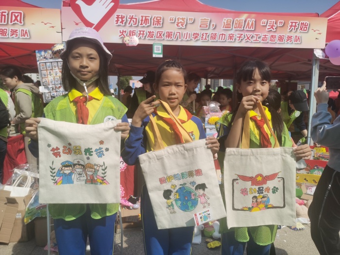 本次活動(dòng),火炬八小組織了一支三十多人的“紅領(lǐng)巾”親子義工團(tuán)隊(duì)。義工們根據(jù)活動(dòng)內(nèi)容要求,結(jié)合八小“君子文化教育”理念,確定了“我為環(huán)保袋言,溫暖從頭開始”為主題的義賣宣傳活動(dòng)。