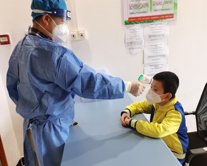 根據(jù)演練方案,本次晨檢發(fā)熱情境應(yīng)急演練按照校內(nèi)處置、校外各部門協(xié)調(diào)溝通、及時(shí)上報(bào)上級部門等環(huán)節(jié)進(jìn)行。情境演練模擬入校時(shí)一名學(xué)生體溫異常并伴有咳嗽癥狀,通過排查學(xué)生疑似新冠核酸檢測結(jié)果為陽性的整個(gè)應(yīng)急處理過程。在演練過程中,各個(gè)環(huán)節(jié)參與演練的人員依照學(xué)校制定的方案,嚴(yán)肅認(rèn)真、緊張有序地進(jìn)行,達(dá)到了預(yù)期效果。