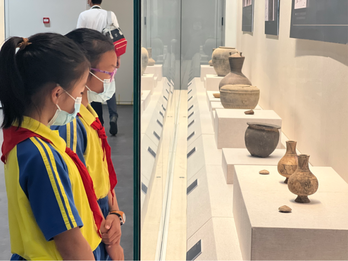 來自新石器時代至商周時期的米字紋陶甕、石拍、陶壺和青銅器……大量的展陳文物和沉浸式場景帶領(lǐng)著隊員們仿佛走進了遠古的香山文明,進行一場短暫的時空穿梭。博物館中每一件藏品、每一個場景的還原,都在無聲地向隊員們講述著中山的歷史和香山文化的發(fā)展歷程。