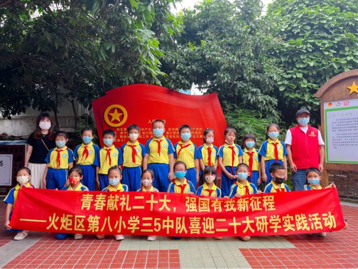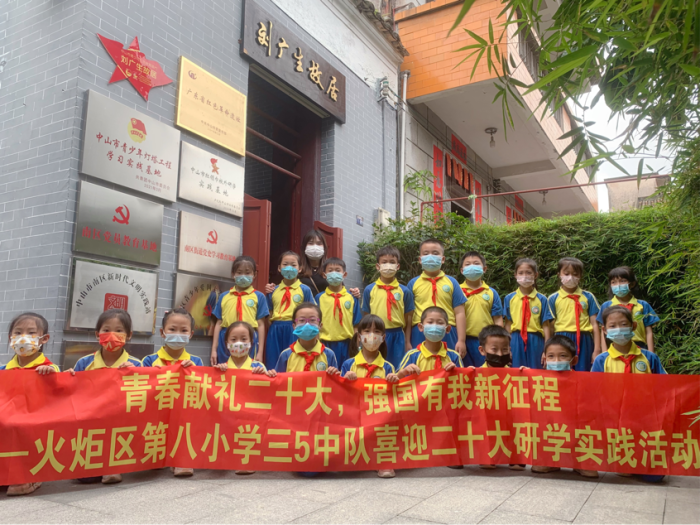 為迎接黨的二十大勝利召開,深入貫徹落實習近平新時代中國特色社會主義思想,引導(dǎo)隊員們自覺從黨的重大成就和歷史經(jīng)驗中增長智慧,增強信心,用青春唱響“強國復(fù)興有我”的時代強音,在第八小學(xué)黨支部的指導(dǎo)下,5月22日上午,火炬區(qū)第八小學(xué)大隊部開展喜迎二十大研學(xué)實踐活動,以三5中隊為代表的隊員們深入挖掘中山本土紅色教育資源和紅色革命遺址,汲取奮進力量。