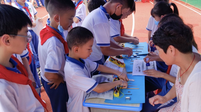 科學(xué)體驗(yàn)活動(dòng)則在5月31日下午開展,全校1332名學(xué)生參與到本次活動(dòng)當(dāng)中?;顒?dòng)現(xiàn)場(chǎng)設(shè)置了一系列蘊(yùn)含科學(xué)知識(shí)的趣味活動(dòng),“穿越火線、點(diǎn)亮小燈泡、觀察動(dòng)植物細(xì)胞、它能導(dǎo)電嗎、滑翔機(jī)大比拼……”學(xué)生們沉浸于科學(xué)體驗(yàn)活動(dòng)的同時(shí),也收獲了許多的科學(xué)小知識(shí),活動(dòng)場(chǎng)上縈繞著孩子們的歡聲笑語。